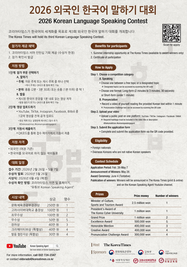 코리아타임스 2026 외국인 한국어 말하기 대회 안내